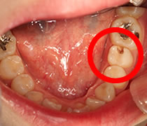 虫歯がかなり深く進行して、神経近くに達し、歯髄炎を起こしている状態でした。