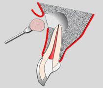 根管治療では、根管の内部から歯根を綺麗にする治療でした。何らかの理由で根管内部から治療しても病巣にアプローチできない場合に行う治療法を歯内療法外科といいます。通常、歯肉を切開して治療します。